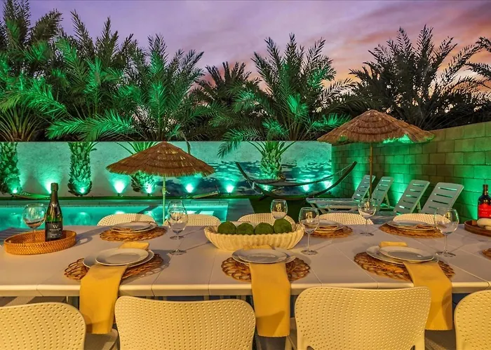 This Coachella accommodation features an equipped kitchenette, as well as an outdoor dining area for guests's convenience. On-site self-catering also includes an oven and a dishwasher. After a day of exploring Coachella and its attractions, you can take a refreshing swim in a private swimming pool or enjoy a private garden at Bella Coachella Villa.